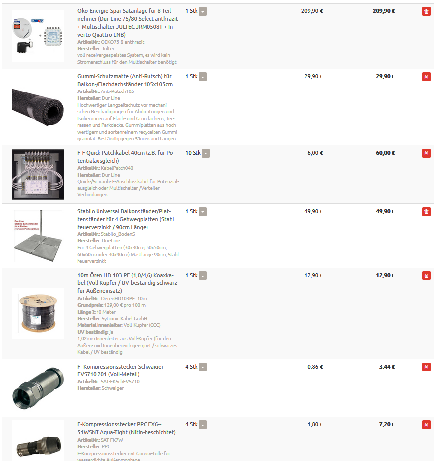 Kontrolle Warenkorb Sat Anlage für EFH