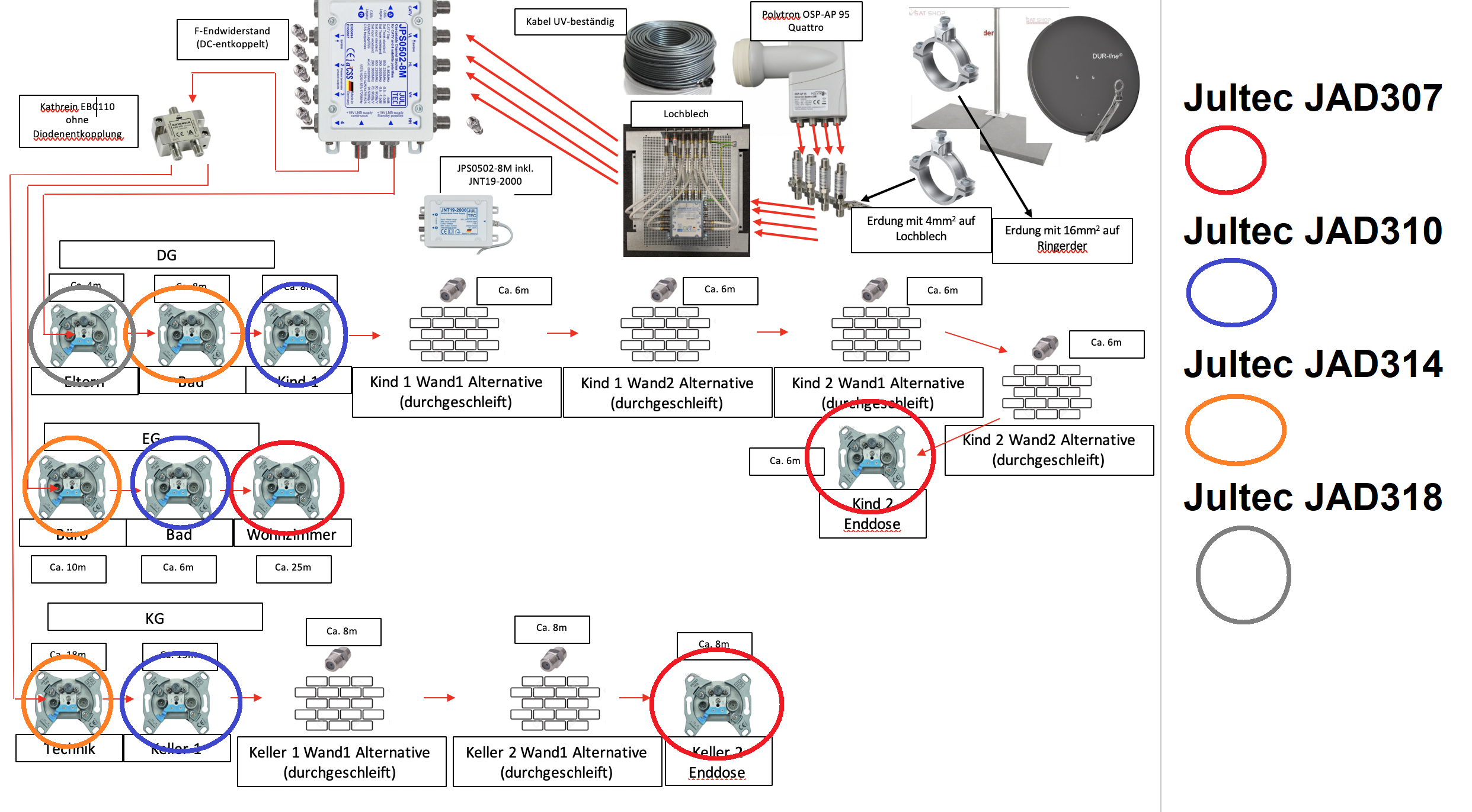 Die Antennendosen haben recht "wenig" mit einer Kabellänge zu tun, da geht es einfach um die Abstuffung der Auskoppeldämpfung.polo6n hat geschrieben:Die Durchgangsdosen kann ich erst bestimmen, wenn ich die Kabellängen habe (kann ich aber direkt bestimmen, wenn ich die Kabel ins Haus ziehe). Dann würde ich die Dosen nachbestellen.
