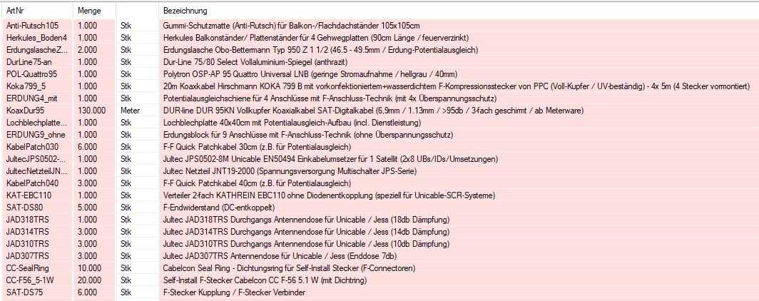 Das ist weitgehend OK, aber hier laufen gerade 3 Beiträge parallel mit einem Flachdach-Aufbau .. da gehört ein Mast-naher Potentialausgleich dann dazu (dazu läuft aber gerade in dem folgend verlinkten Beitrag noch eine Rückfrage die sicher bald beantwortet wird ..). Auch ist ein 2-Plattenständer nicht gerade zu empfehlen, dem fehlt einfach der "Halt" auf eine Seite hin (aber auch dazu steht was im folgenden Beitrag ...).polo6n hat geschrieben:Moin Moin, jetzt den Warenkorb mal korrekt angehängt