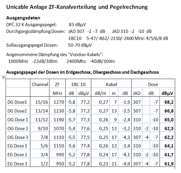 Ich arbeite gerne mit EXCEL, aber in diesem Fall habe ich die Genauigkeit völlig übertrieben.techno com hat geschrieben:Das ist jetzt wirklich in diesem Fall keine große Notwendigkeit, das sind ja eh alles rein theoretische Pegelplanungen da die Werte von z.B. dem Kabel gar nicht bekannt sind genau.