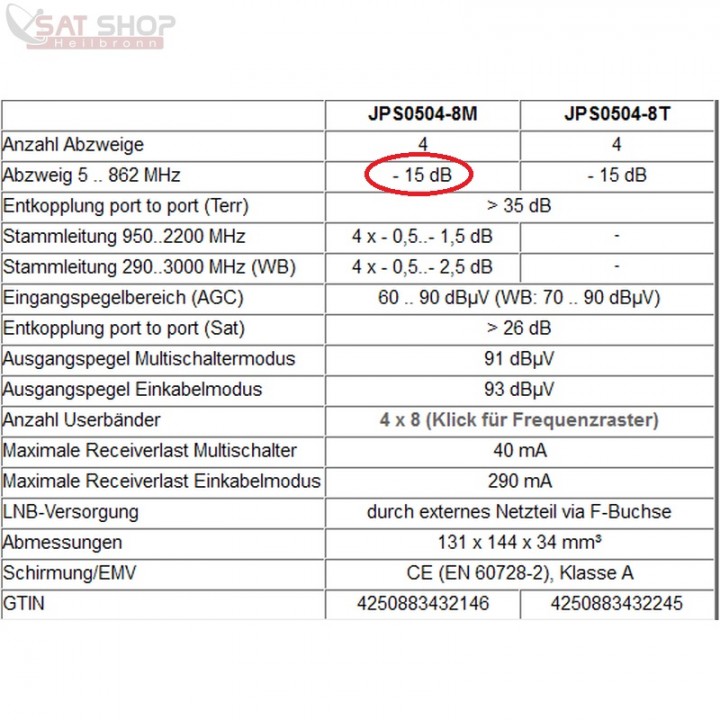 Auch aus diesem Grund ist es besser den JRM0516M zu nehmen statt dem JRM0516A, wegen der Abzweigdämpfung für den terrestrischen Eingang. Beim JRM0516M also 24db.