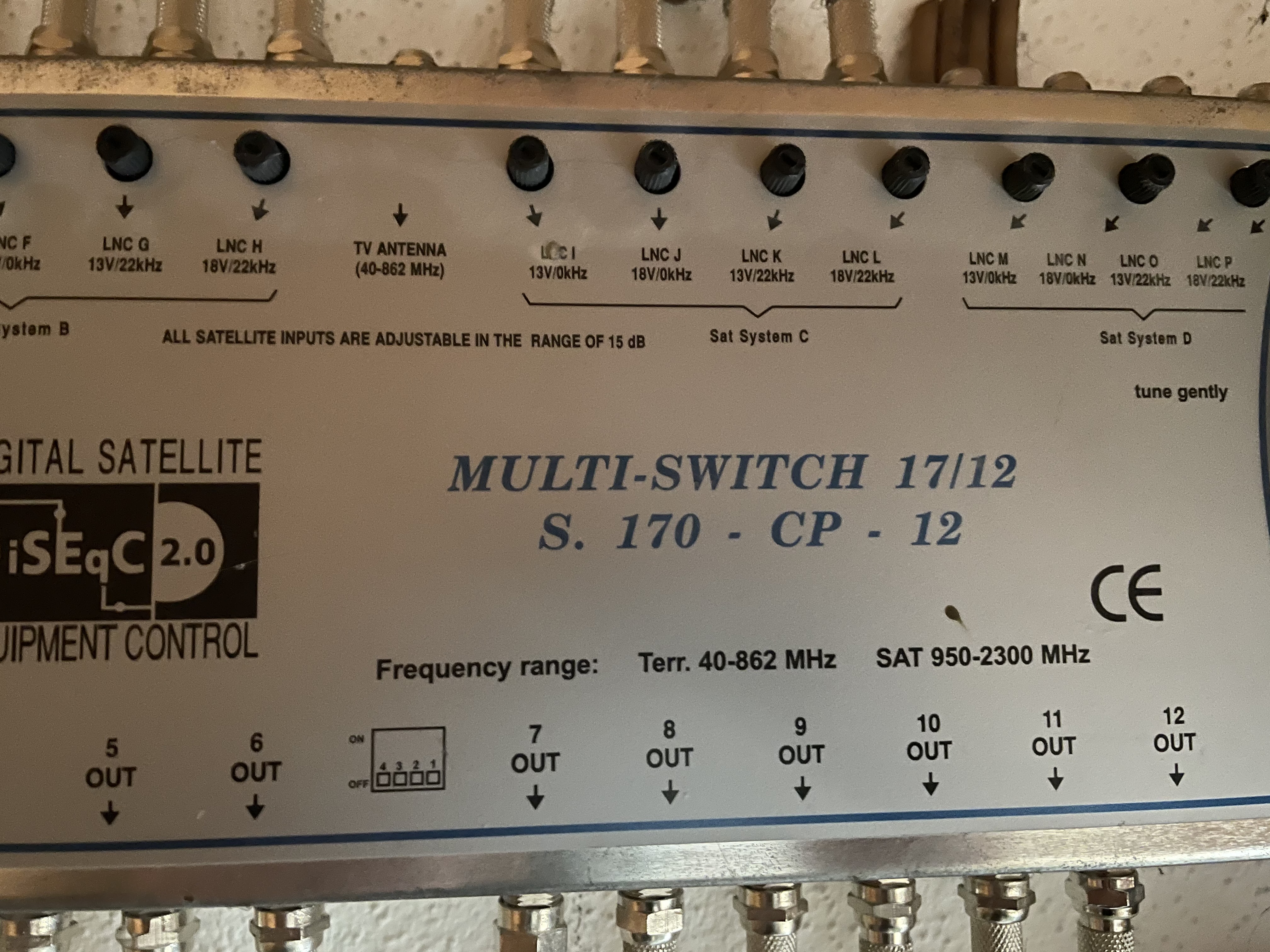 Also Die Antenne ist eine Wavefrontier T90 mit 2 x Inverto Premium LNB Quattro , der Multischalter ist ein Centauri S.170-CP-12 , die Dosen sind von Busch Jäger ca 15 Jahre alt.