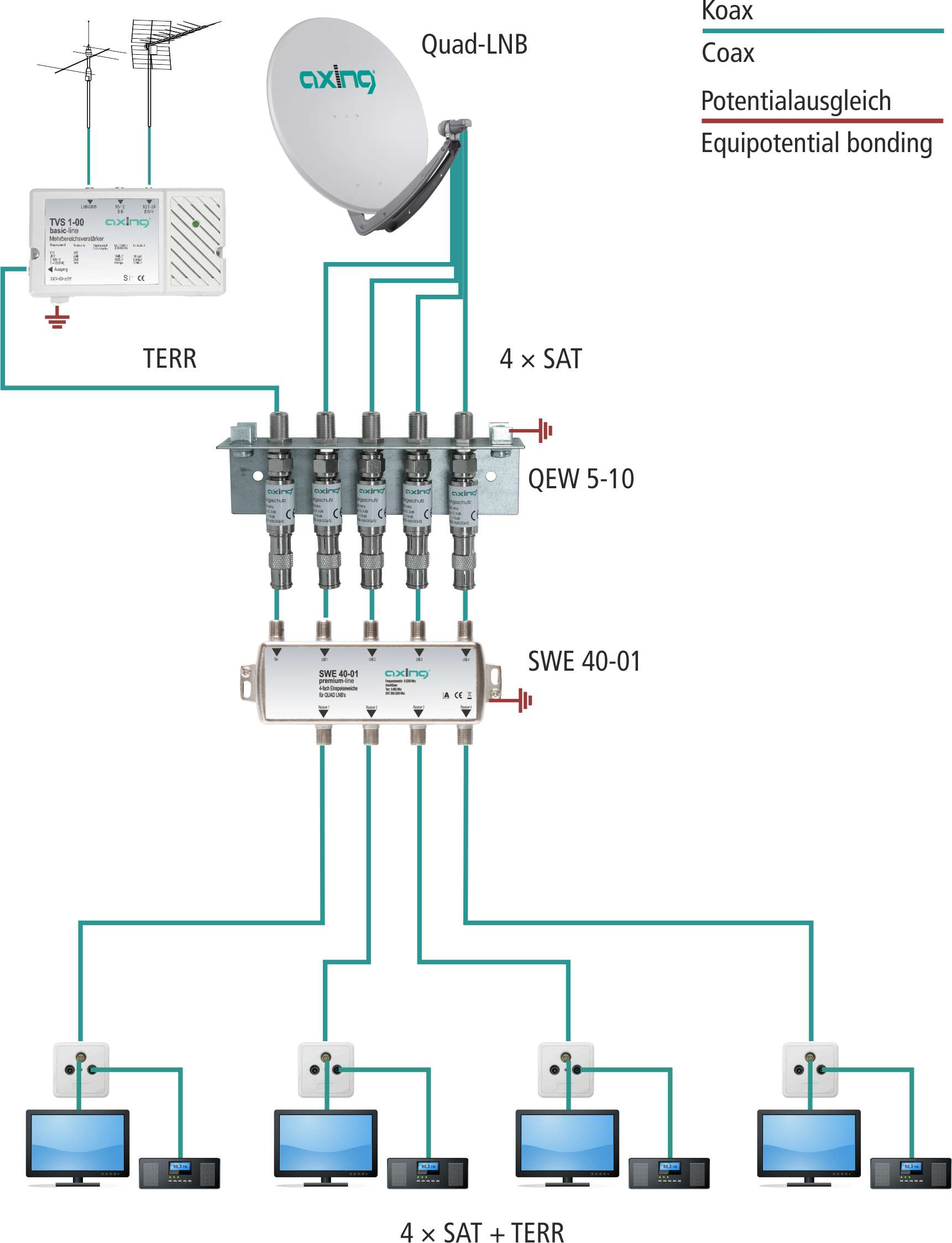 Jetzt war der Grundgedanke, eine Einspeiseweiche dazwischen zu machen, der einen terristischen Eingang hat, und man mit dem einen Kabel weiter nach unten zur Dose bzw. Receiver geht.