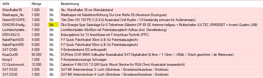 Kontrolle Warenkorb Sat Anlage für EFH (dort eben nur mit einer Dachmontage statt der Wandmontage, aber sonst 100% genau das was sie hier planen mit vielen Tips dazu).
