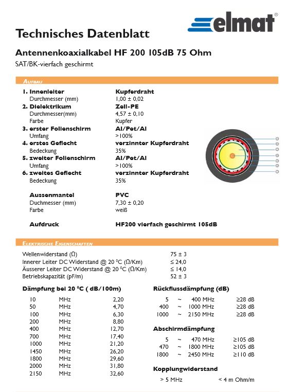 Zu ihrer Sache hier kann ich erst einmal vorab sagen das ihr fragliches Kabel (am Telefon) gar nicht so schlecht ist, vor allem darum weil der Innenleiter des Kabels auf Voll-Kupfer ist (Datenblatt vom Kabel habe ich hier mal angehängt).