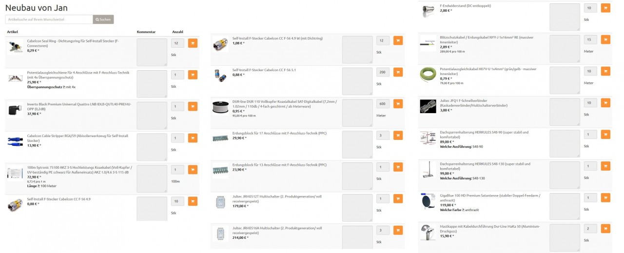 Mittlerweile sind wir bei Komponenten die sie gar nicht onilne über den Shop bestellen können (Schaltschrank in der Größe, 25er Erdungsblock ...)... das müssen wir irgendwie dann hier manuell alles nach einer Bestellung hinzu fügen und den Auftrag dann nach diesen Änderungen noch einmal an sie raus senden.[Jan] hat geschrieben:genau. war auch erst einmal nur ein Platzhalter und hätte ich noch geändert, wenn klar ist wie und wo ich die Komponenten platziere.