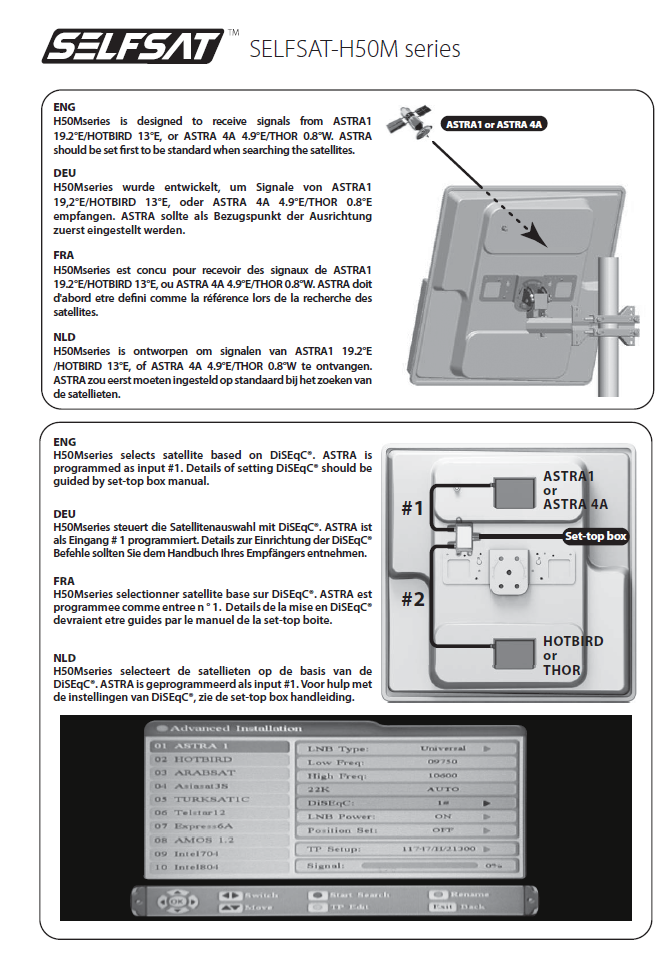 Man muss nur die beiden Satelliten vertauschen. Hotbird als 1. und Astra als 2. Satelliten einstellen ...