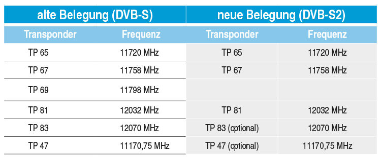 Im Zuge dieser Umstellung werden auch einige Sender auf andere Transponder umziehen.