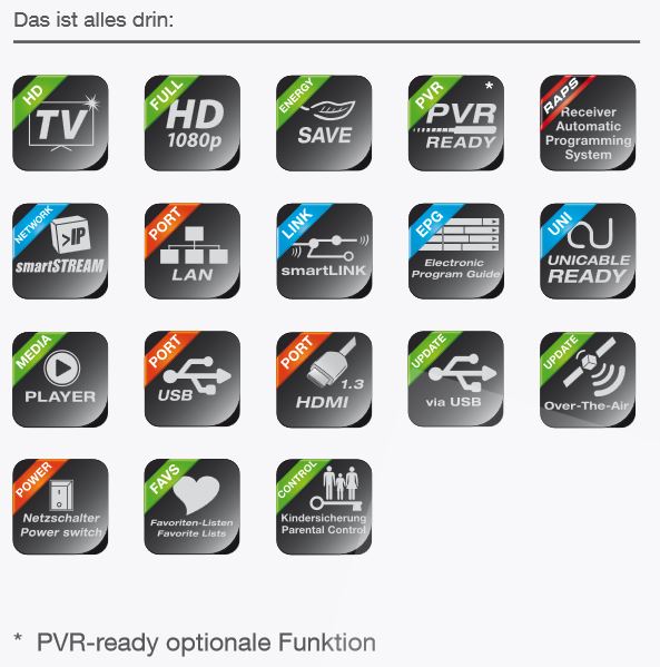 Mit dem CX05 bricht das neue Zeitalter der smart Receiver an. Angepasst an die mobile Welt, verfügt dieses Gerät über die pfiffige smartSTREAM* Funktion. Einfach über den Receiver den per Satelliten empfangenen Sender in Ihre WLAN-Infrastruktur einspeisen und an jedem beliebigen Ort im Haus oder Garten das aktuelle TV-Angebot via Tablet oder Smartphone genießen. Nach der einfachen Installation einer App auf dem jeweiligen mobilen Gerät, steht Ihrem smartSTREAM TV Erlebnis nicht mehr im Wege.Der smart CX05 kann aber noch viel mehr, denn über das integrierte WEB-Radio haben Sie Zugriff auf Ihre Lieblings-Radiosender und über den Integrierten Mediaplayer können Sie Urlaubsfotos, Lieblings-MP3 und Heimvideos auf Ihrem Breitbildmonitor genießen.