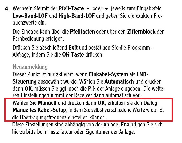 Die ID/Frequenzen des JRS0502-8M Multischalter lt. Doku sind