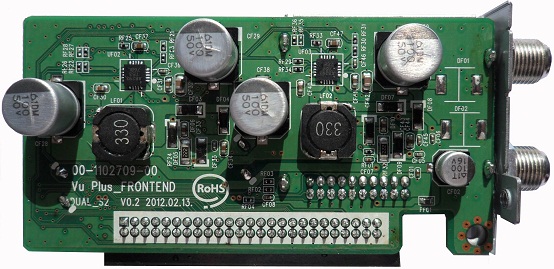 Austauschbarer Dual/Twin DVB-S2 Tuner. Man kann problemlos den integrierten Single Tuner gegen diesen Twin/Dual Tuner austauschen. Somit können Sie einen weiteren Transponder nach freier Auswahl über Satellit empfangen (*1).