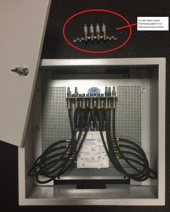Wie oben schon bei Twin-/Quattro-LNB erklärt müssen also nicht nur 2 weitere Koaxkabel vom LNB bis zum Multischalter verlegt werden, sondern dort auch noch zusätzlich parallel ein 4mm² Potentialausgleichskabel.