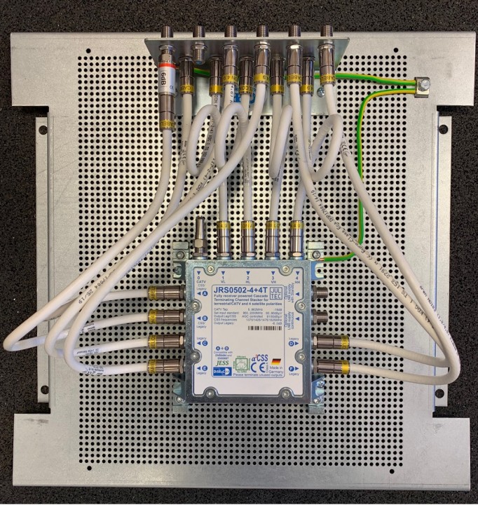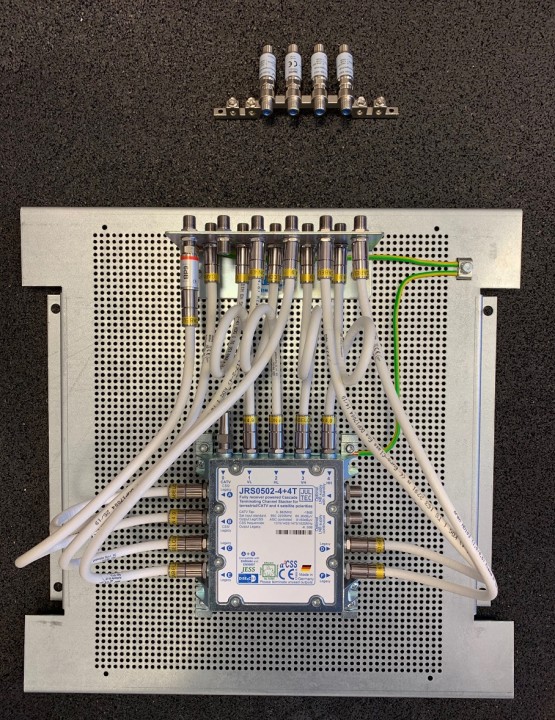 Im nächsten Schritt galt es die alte Kabel-TV Technik zu demontieren und die perfekt vormontierte Montageplatte mit dem Jultec JRS0502-4+4T anzubringen.