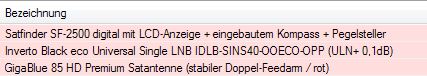 Die Idee finde ich super, wie schon gesagtLorenzo hat geschrieben:Ich würde ganz gerne auch schon vorab verschiedene Sat-Standorte einmal provisorisch prüfen, bevor ich die gesamte Anlage erstelle. Eventuell kann ich die Schüssel sehr bodennah anbringen. Hängt aber vom Empfang und der optischen Akzeptanz ab. Dazu würde ich gern schon mal vorab die Schüssel und einen LNB zum Ausprobieren bestellen. Als Schüssel hab ich mir die GigaBlue 85 HD Premium vorgestellt. So wie ich das verstanden habe, brauche ich für ein Einkabelsystem ein Quattro LNB, der aber nicht direkt mit dem Receiver zu verbinden ist. Da würde ich zum Testen einen einfachen Single LNB nehmen und später dann durch einen Quattro LNB ersetzen. Die Kosten sind ja nicht so extrem. Ich würde ggf. den Inverto Black eco Universal Single LNB IDLB-SINS40-OOECO-OPP dazu verwenden.