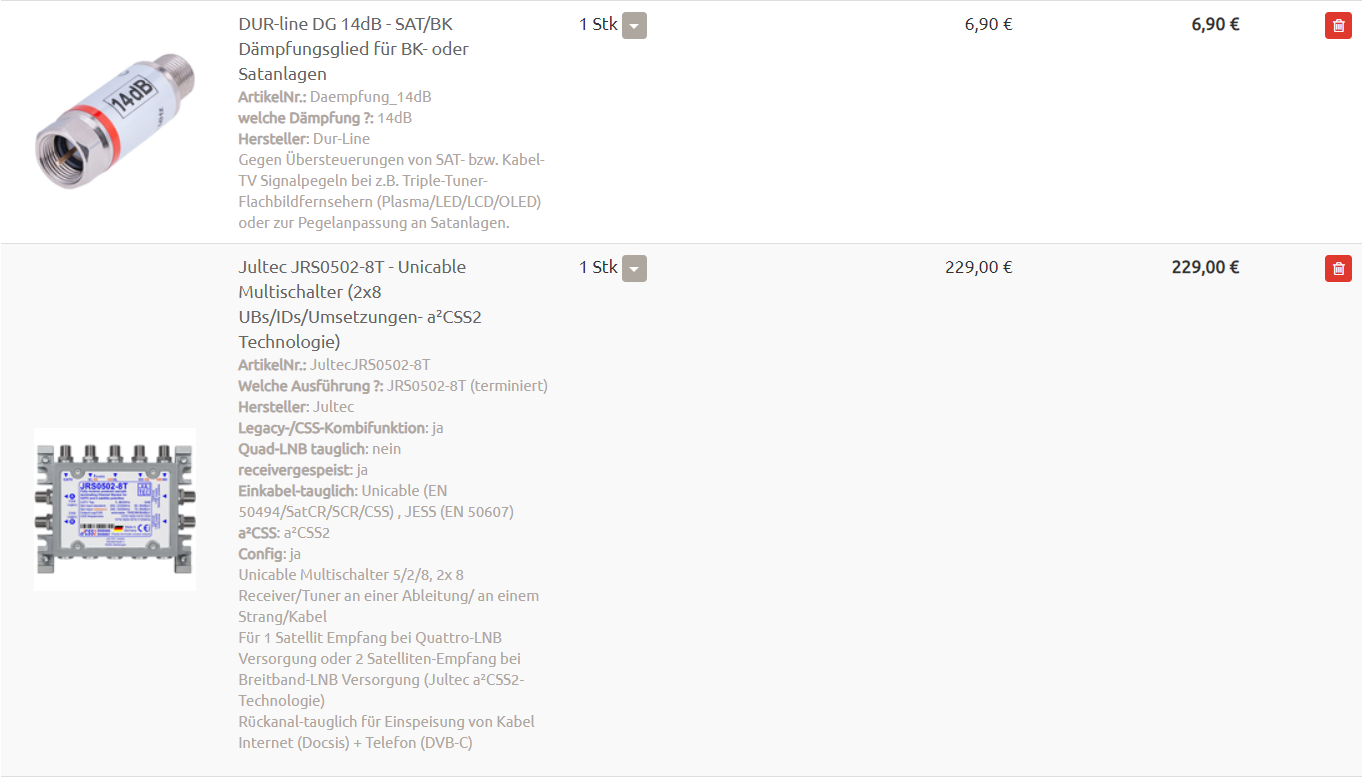Ein paar Bilder vom fertigen Aufbau natürlich auch, bitte vergeben sie hierbei den Bildern passende Namen (z.B. "JultecJRS0502-8T_Unicable-Satanlage_xyz").