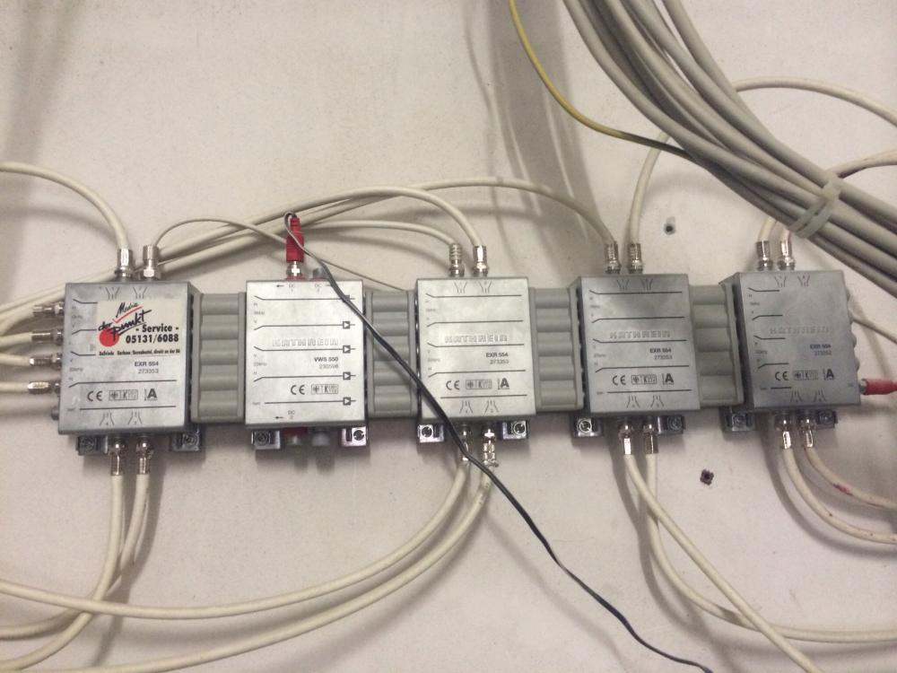 Dieser Aufbau wie er bei ihnen da im Haus ist wurde zusammen gestellt aus mehreren Kaskadenbausteinen anfangend mit einem 5/4 Multischalter links am Anfang und dann weiter über einen Zwischenverstärker an 3 weitere 5/4 Multischalter .... so baut man das heute nicht mehr !
