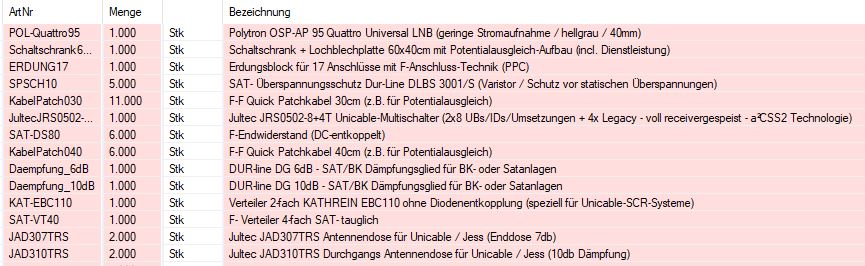 Beide Varianten sollen inkl. Potentialausgleich, Erdung, Lochplatte und Schaltschrank und neuem LNB (Polytron OSP-AP 95) sein.