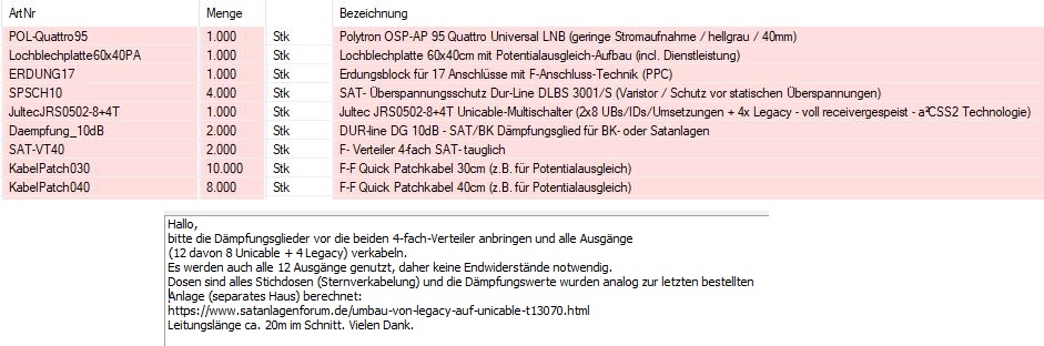 Re: Umbau von Legacy auf Unicable