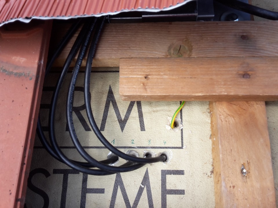 5x UV-beständige Koaxkabel von Quattro-LNB + terrestrischer UKW-Antenne nach innen bis auf den "Mast-nahen Potentialausgleich" (