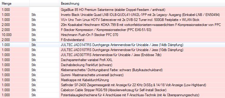 Hallo und Herzlich Willkommen im ForumHoss57 hat geschrieben:Nach längerem Studium im Forum habe ich mir mal eine Konfiguration zusammengestellt und würde gerne von Ihnen wissen ob diese für eine SAT Installation so in Ordnung ist?