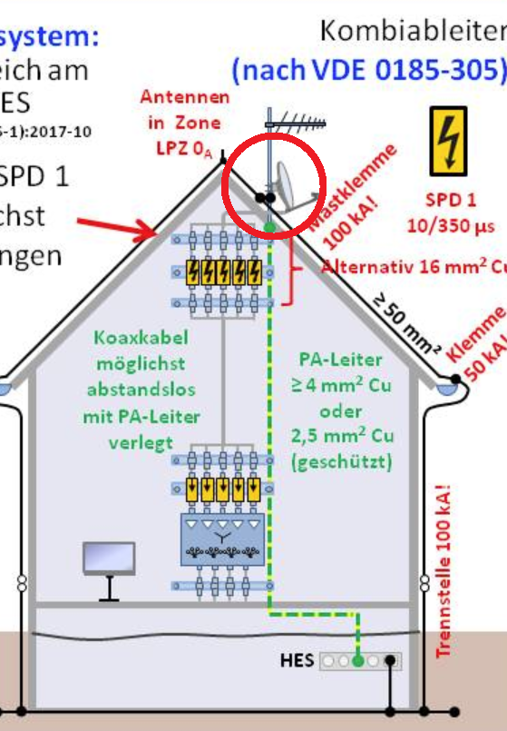 Benötige ich das folgende überhaupt? Der Potentialausgleich wird ja direkt von dem Masten in zur Potentialausgleilchsschiene in den Keller geführt.