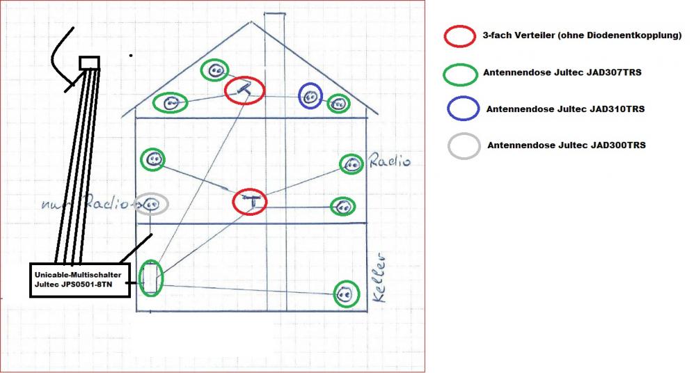 P.S. bei der Zeichnung wurde ein Anschluss, der für "nur Radio-Empfang" so eingeplant das er über den Legacy-Ausgang vom Multischalter versorgt wird, d.h. dort müsste kein unicable-tauglicher Receiver zum Einsatz kommen !