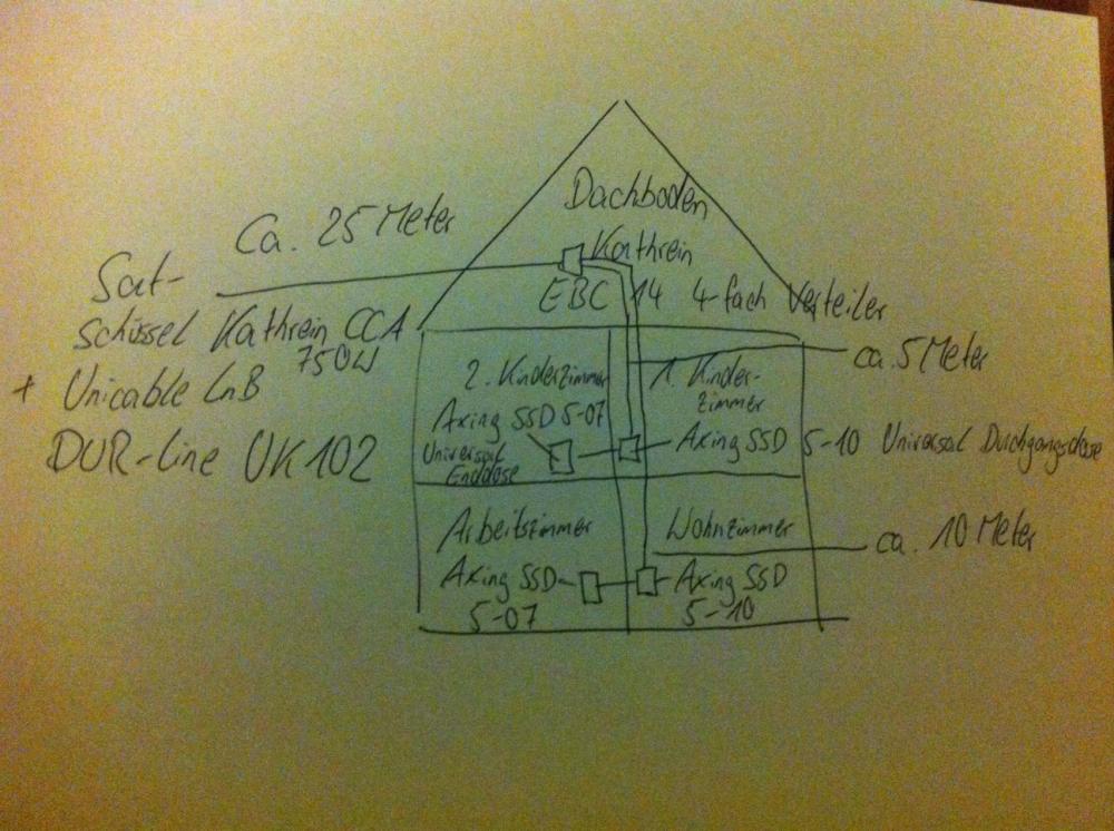 momentan läuft die Anlage mit einem ganz normalen LNB und auch ohne Probleme. Möchte das Haus aber wie auf beiliegendem Bild aufgezeichnet verkabeln