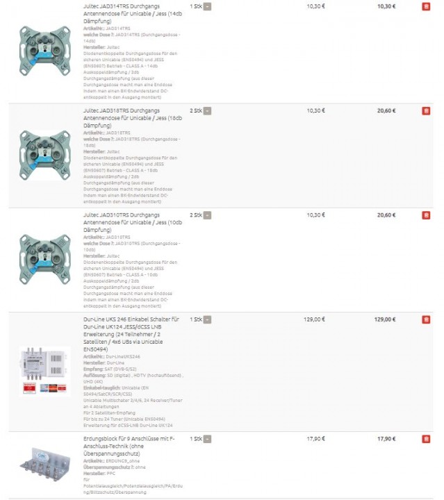 Geplant ist deswegen jetzt ein Unicable-System für vorerst 5 Teilnehmer mit der Option auf Erweiterung auf 8, ebenso der Einsatz von Sat-Receivern mit mehreren Tunern (VU+ und dergleichen).