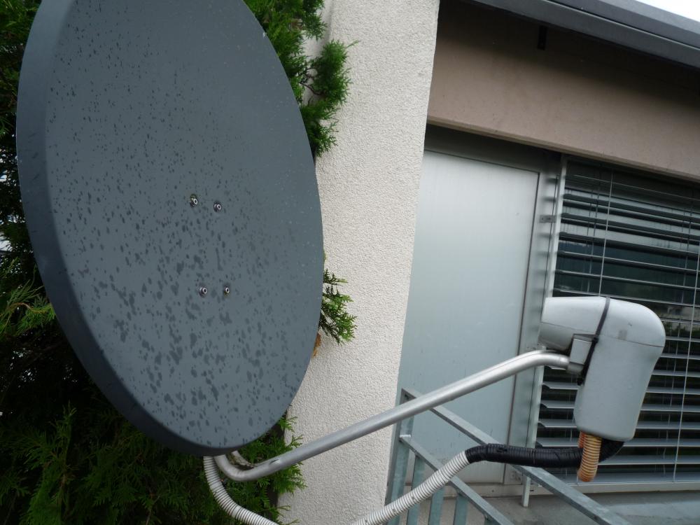 Bitte beachten: Ihr Bild1 zeigt über der Antenne eine Dachkante auf. Falls dies die Dachkante hin zum Dach ist dann befindet sich ihre Antennenanlage/Antenne voll im erdungspflichtigen Montagebereich und muss einem Blitzschutz und einem Potentialausgleich unterzogen werden. Lesen sie dazu mehr in fast jedem anderen Beitrag hier im Forum und/oder unter Erdung Satellitenanlage / Antennenmast + Potentialausgleich.