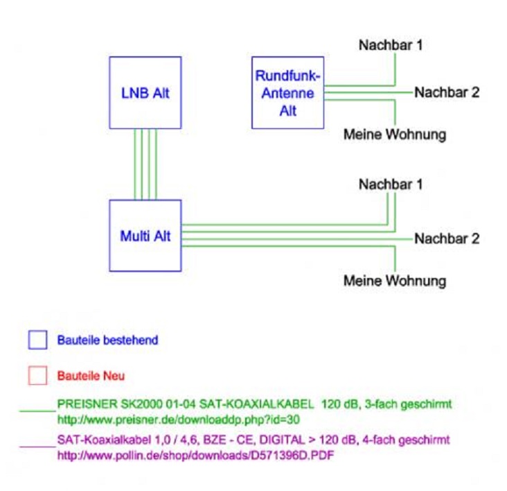 Meine Frage ist, ob die jetzige Planung möglich ist, da ich mit dem Jultec Multischalter in der Kaskadenversion zwischen bestehendem LNB und bestehendem Multischalter dazwischen gehen will (siehe Anhang: geplante Sat-Anlage).