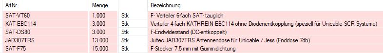 Nein ... abgesehen das eine 4-Loch Dose ja auch 2 Kabel benötigen würde für den Anschluss ist diese Antennendose auch so falsch .. keine STICHdose, dort müssen dann ENDdosen rein wenn das für Unicable später vorbereitet sein soll (Kabel-TV geht auch so darüber) => jeweils 1x Jultec JAD307TRS Enddoseselberbauer500 hat geschrieben: 30. Januar 2022 12:35Meine Komponentenwahl ist