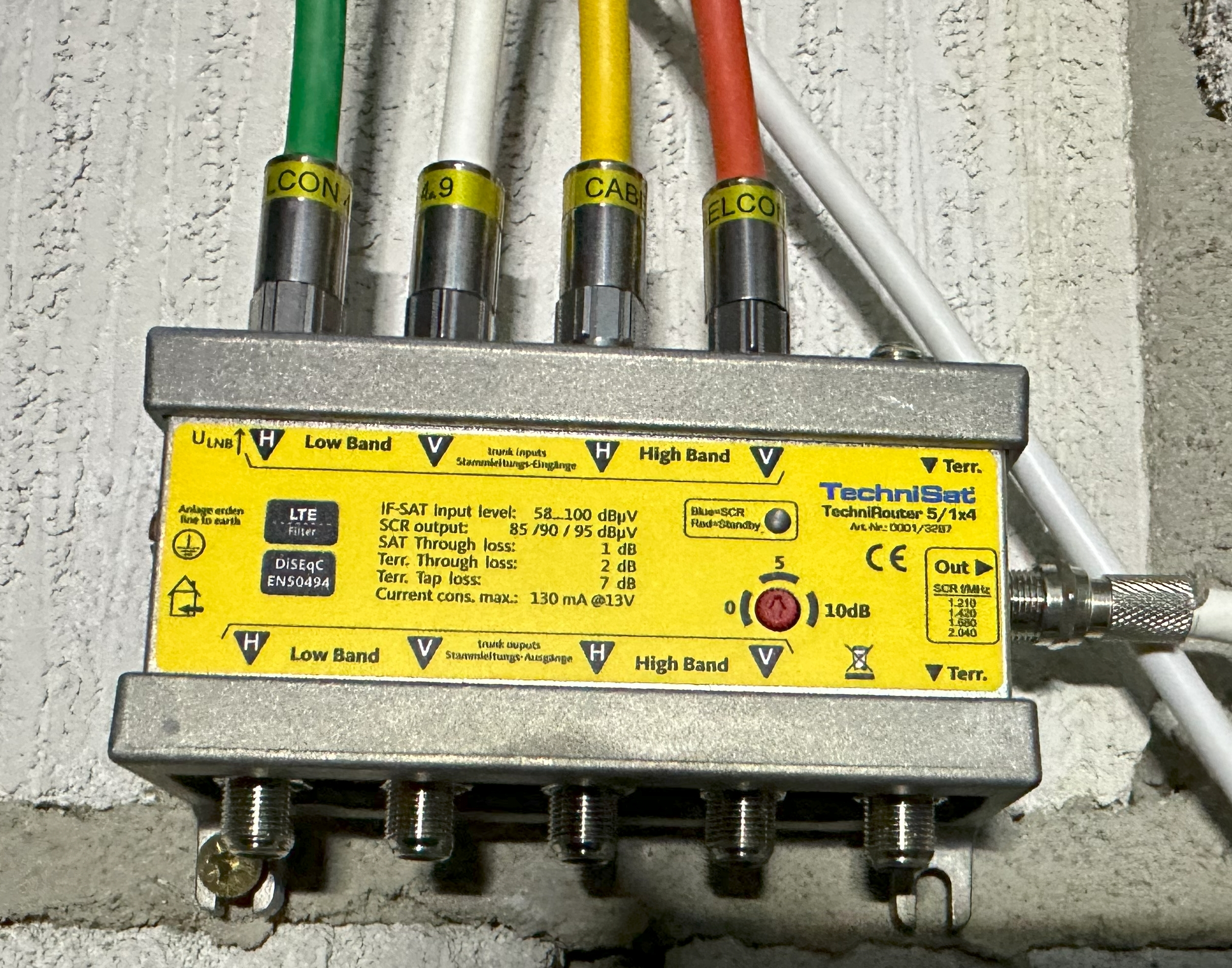 Also habe ich ein neues Quatro LNB gekauft und ein neues Kabel, weil das alte brüchig war. Der Router ist der alte.