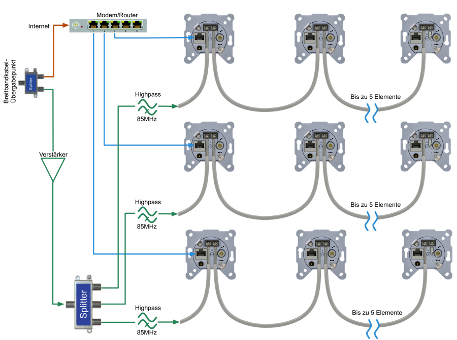 - Internet und Kabelfernsehen über Koaxkabel