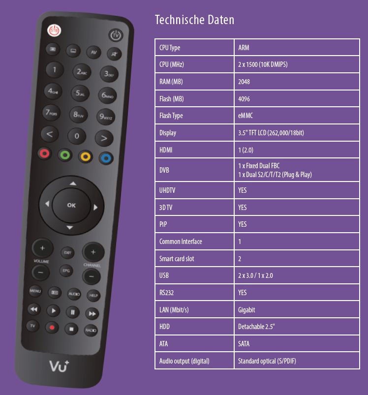 - VU-Plus Solo 4k Datenblatt