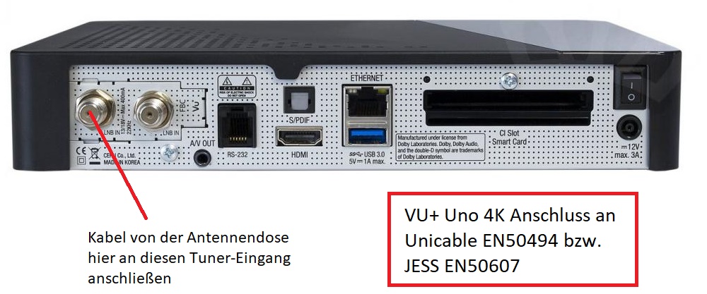 Hier ein Bild davon: Steht auch so im oben verlinkten VU+ Wiki so beschrieben !nutzer hat geschrieben:@Werner, danke für die Antwort, jedoch die UnoBox hat nur 2 nebeneinander liegende Antennenanschlüsse, wobei der linke Tuner A (FBC ?) sein soll.k