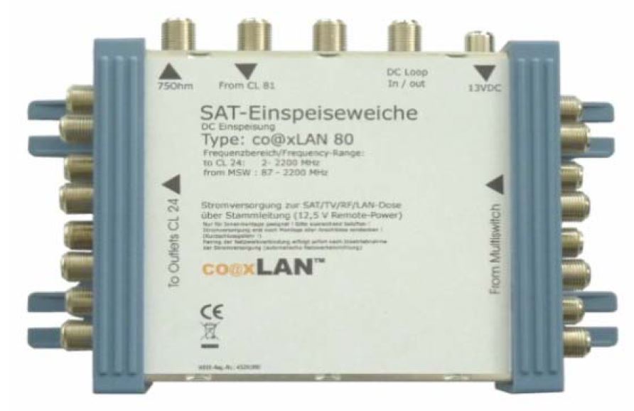 Auch ist die Fernspeisung der CoaxLAN-Modems nur mit den orig. CoaxLAN-Antennendosen möglich, ansonsten wird immer das CL1NT Netzteil benötigt (Multischalter/Router muss Fernspeisung dann unterstützen und auch die ggf. eingesetzten Verteiler müssen die DC-Spannung durchlassen).