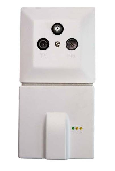 Die co@xLAN Antennendose mit integriertem HomePlug-Modem ermöglicht die einfache Vernetzung von netzwerkfähigen Geräten über bestehende Antennenkabel. Zur Installation sind keinerlei Kenntnisse über Netzwerktechnik oder IP notwendig.